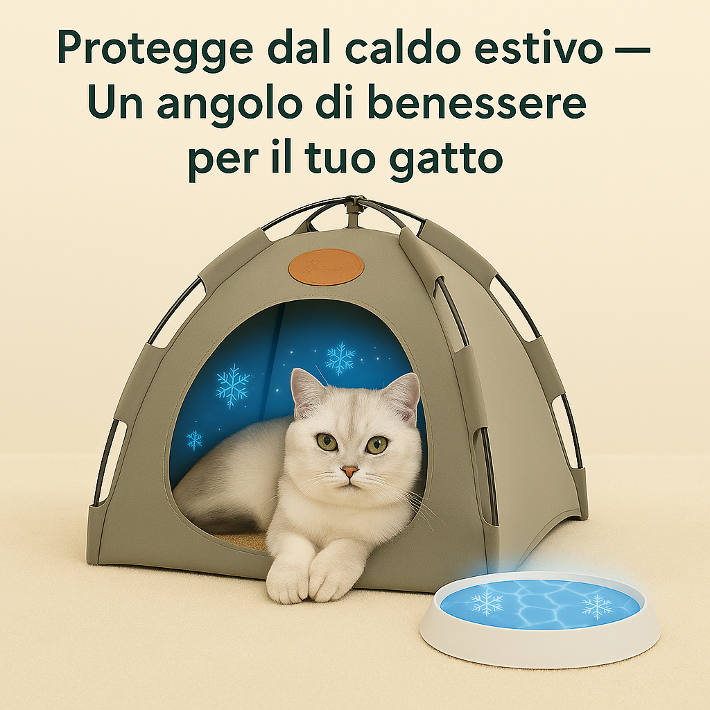- Funzione: mantiene la temperatura più bassa rispetto all’ambiente esterno, ideale per il relax del gatto in estate