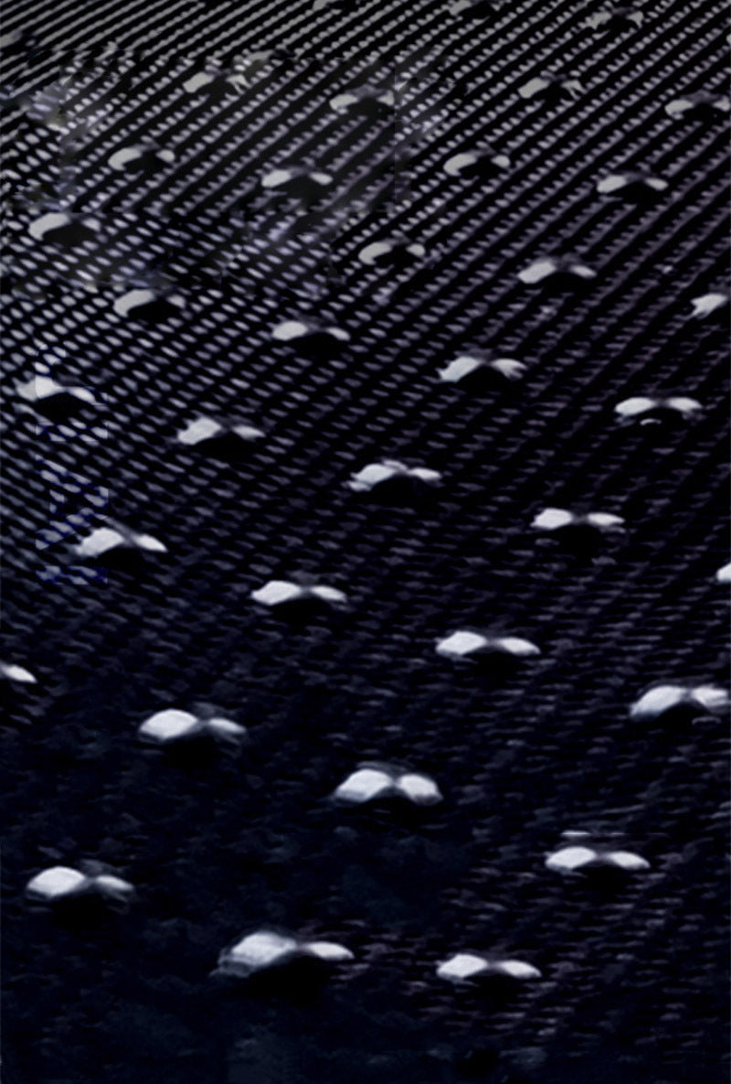 Il tessuto esterno è composto da una fibra tecnica con effetto “cool touch”, progettata per riflettere il calore e mantenere l’interno fresco. L’imbottitura è in schiuma morbida e traspirante. Tutti i materiali sonoatossici, lavabili ed eco-friendly.